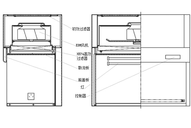 耐用而易于清潔的不銹鋼結(jié)構(gòu)、高品質(zhì)離心式外置轉(zhuǎn)子風(fēng)機(jī),反向葉輪設(shè)計(jì)增加送風(fēng)效率,降低能耗,減少噪音。