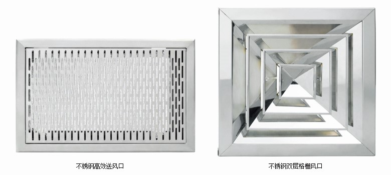 風口采用最新技術設計、使氣流分布更合理,箱體采用優質不銹鋼板或冷軋鋼板制作,表面經烤漆處理,結構簡單可靠。其中高效送風口可作為終端高效過濾單元直接罟干各個級別的潔凈室吊頂等。