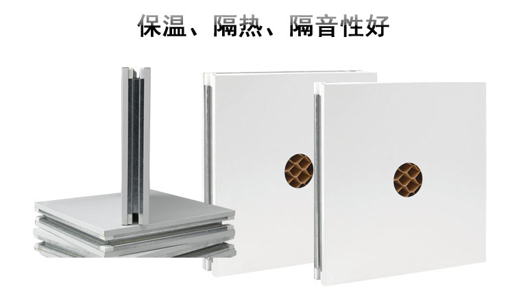 b. 芯材采用紙蜂窩,用熱固化膠在連續(xù)成型機(jī)內(nèi)熱加壓復(fù)合而成的超輕建筑板材;